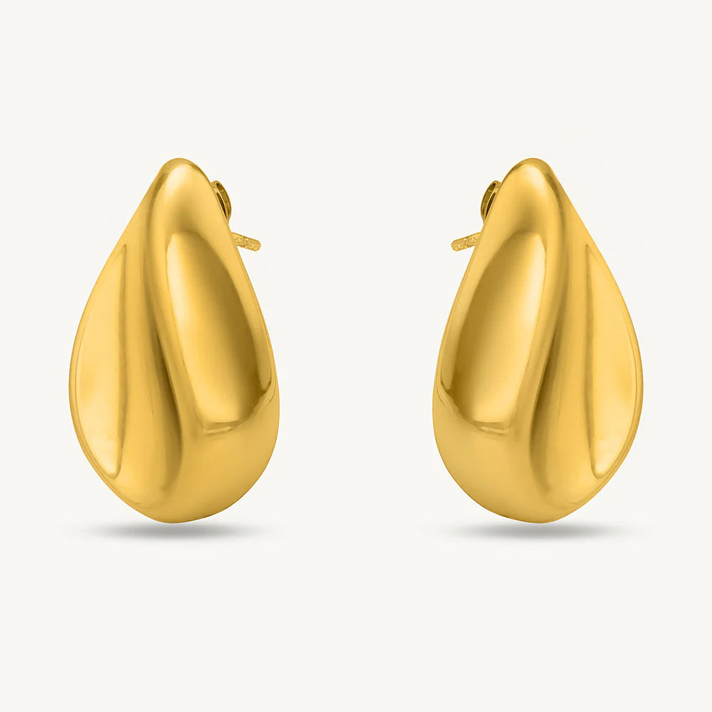 Shine bright with these large, celestial water drop studs. The oversized design and radiant gemstone create a captivating focal point, perfect for making a statement at any event.