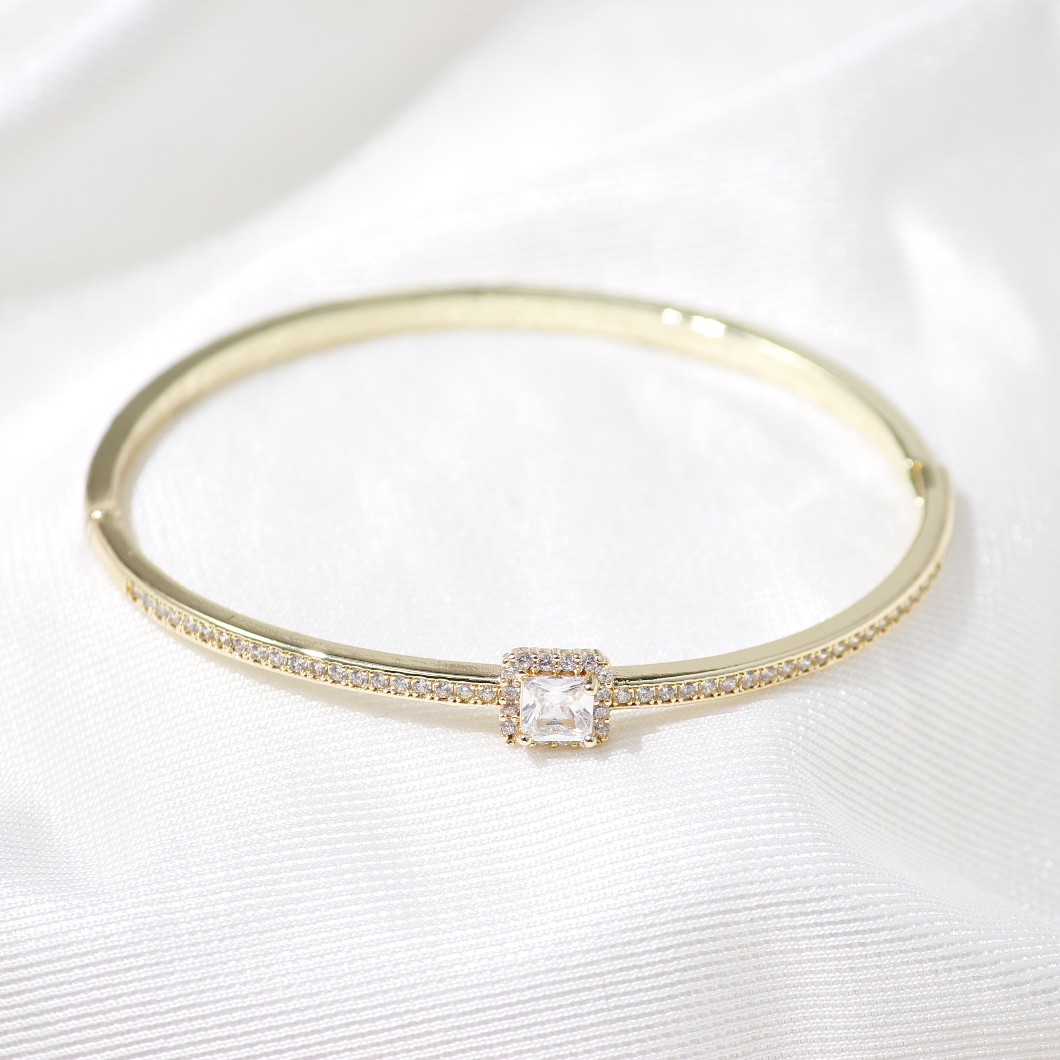 The Celestial Square Diamond Kada blends sleek silver with the brilliance of square-cut diamonds. The clean lines and geometric design highlight the beauty of each diamond, creating a sophisticated accessory that complements any style. Ideal for adding a touch of elegance and modernity to both casual and formal looks.