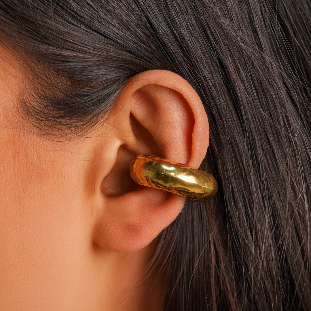 Bold and eye-catching, the Chunky Ear Cuff is designed to make a statement. This thick, sculpted cuff wraps snugly around the ear, creating a striking look without the need for piercings. Crafted from high-shine metal, the cuff’s wide, rounded design gives off a strong, modern vibe while offering a comfortable fit.