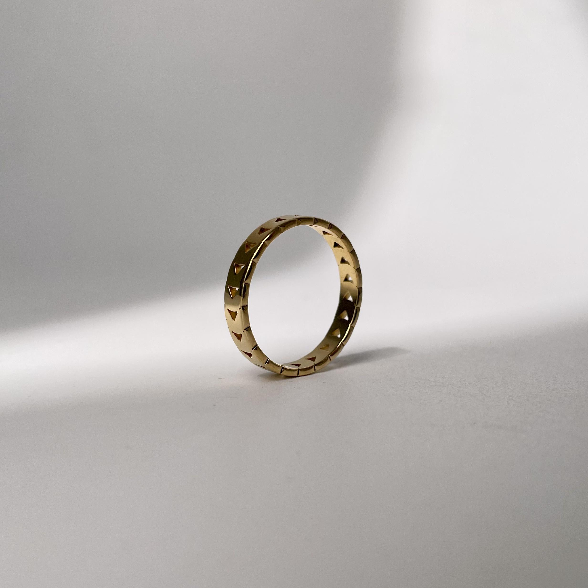 The Cut-Out Ring is designed with decorative open spaces or shapes carved into the band, giving it a sculptural quality. The cut-outs can be placed symmetrically or asymmetrically, depending on the style. For example, you might find a floral-inspired cut-out pattern, or sleek, geometric lines that create a bold, minimalist effect.