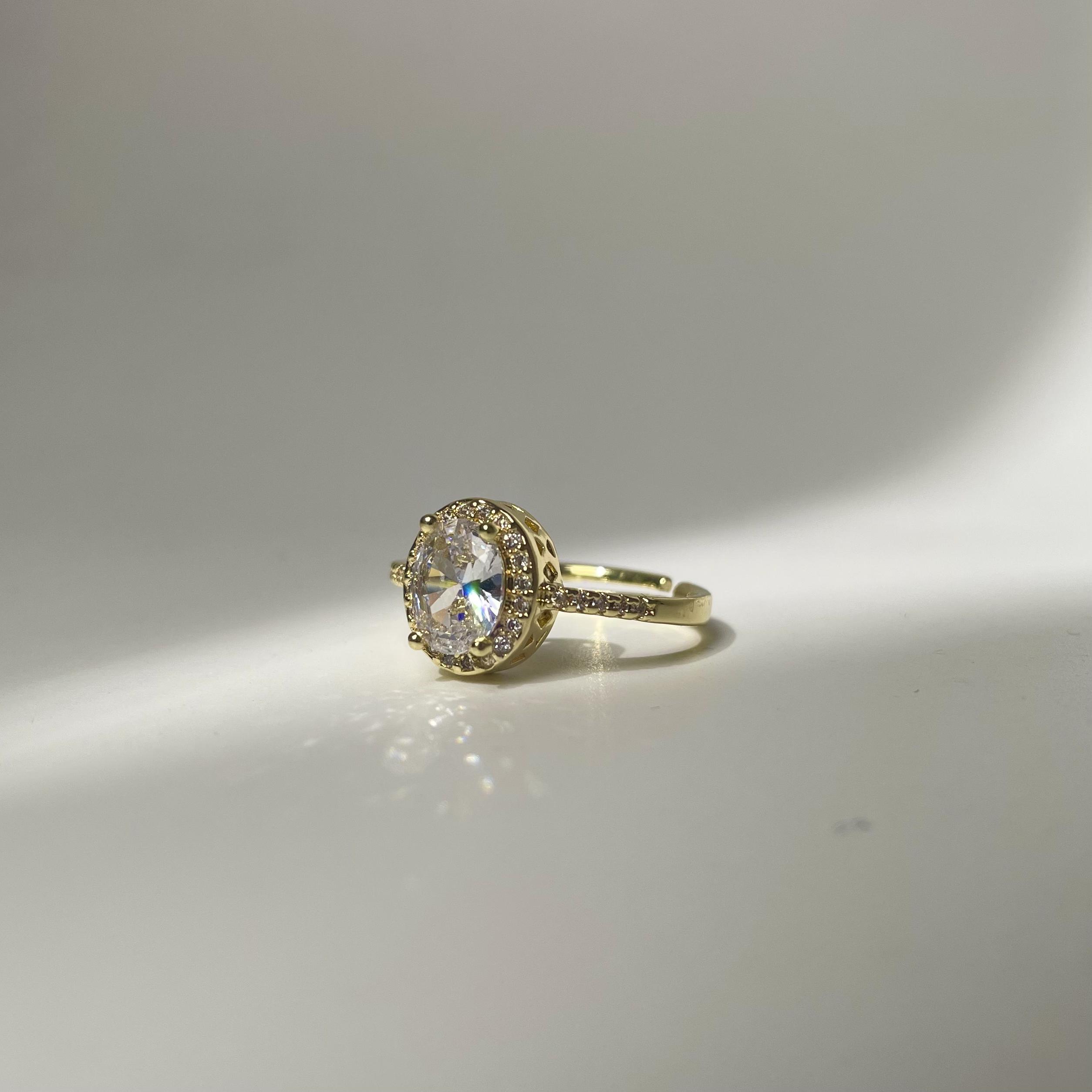 The Diamond Oval Ring - Gold showcases a brilliant oval-cut diamond, renowned for its graceful, elongated shape that enhances the stone's size and brilliance. The diamond is typically set in a four-prong or bezel setting, allowing maximum light to pass through the stone for added sparkle. The band is crafted from high-quality gold, which can be customized in yellow, white, or rose gold depending on personal preference.