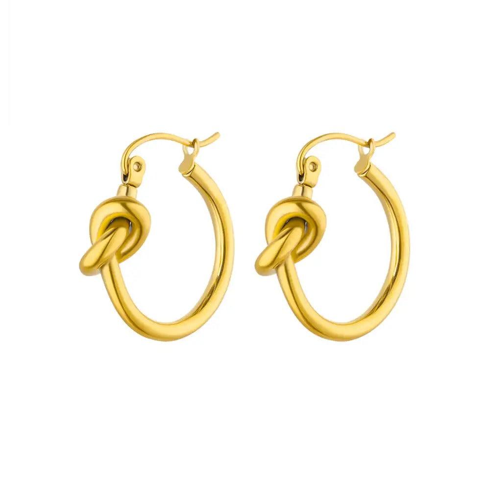 The Eternal Knot Hoops blend elegance and symbolism with their intricate knot detail, representing unity and strength. These medium-sized hoops feature a graceful knot design at the base, adding a touch of texture and sophistication to the classic hoop.