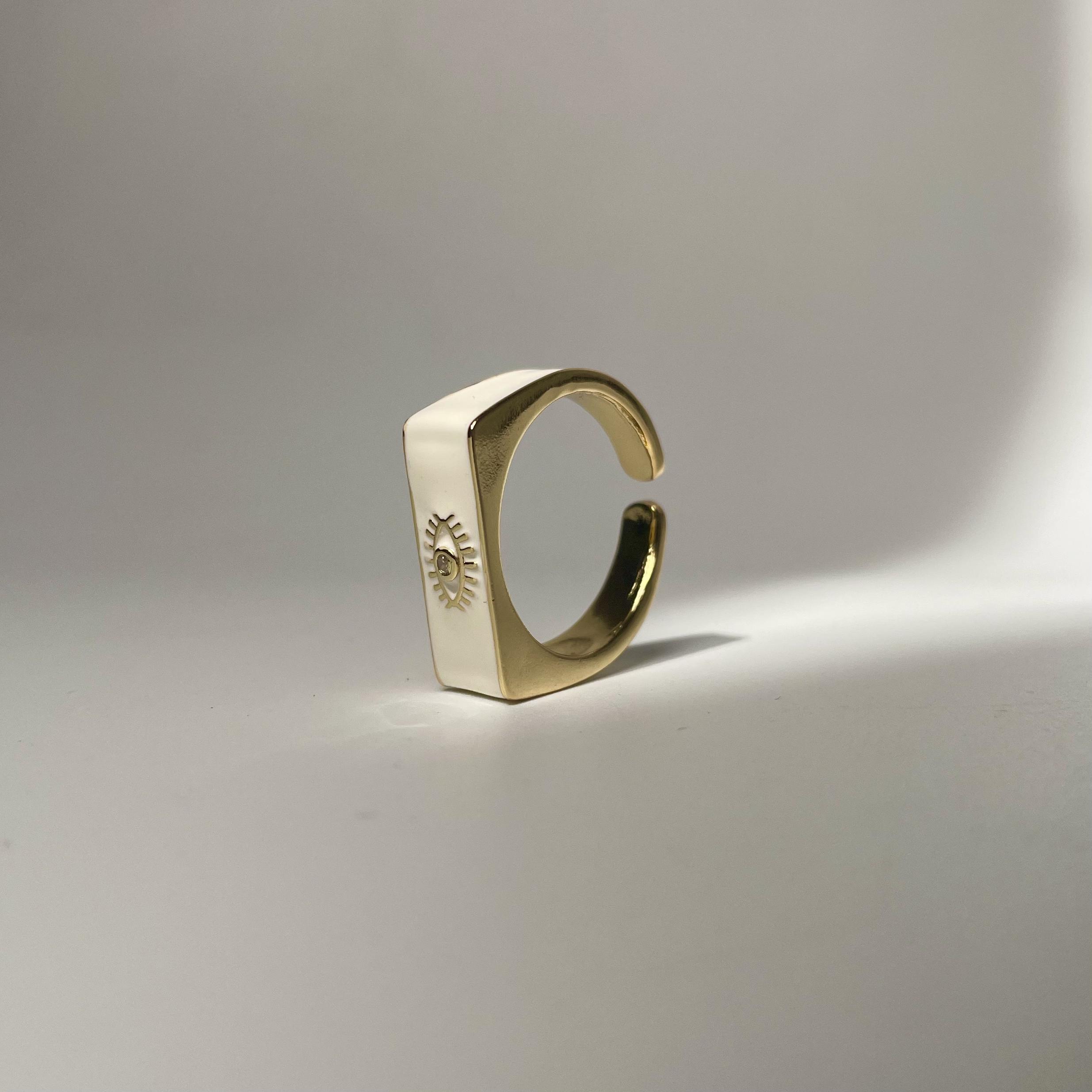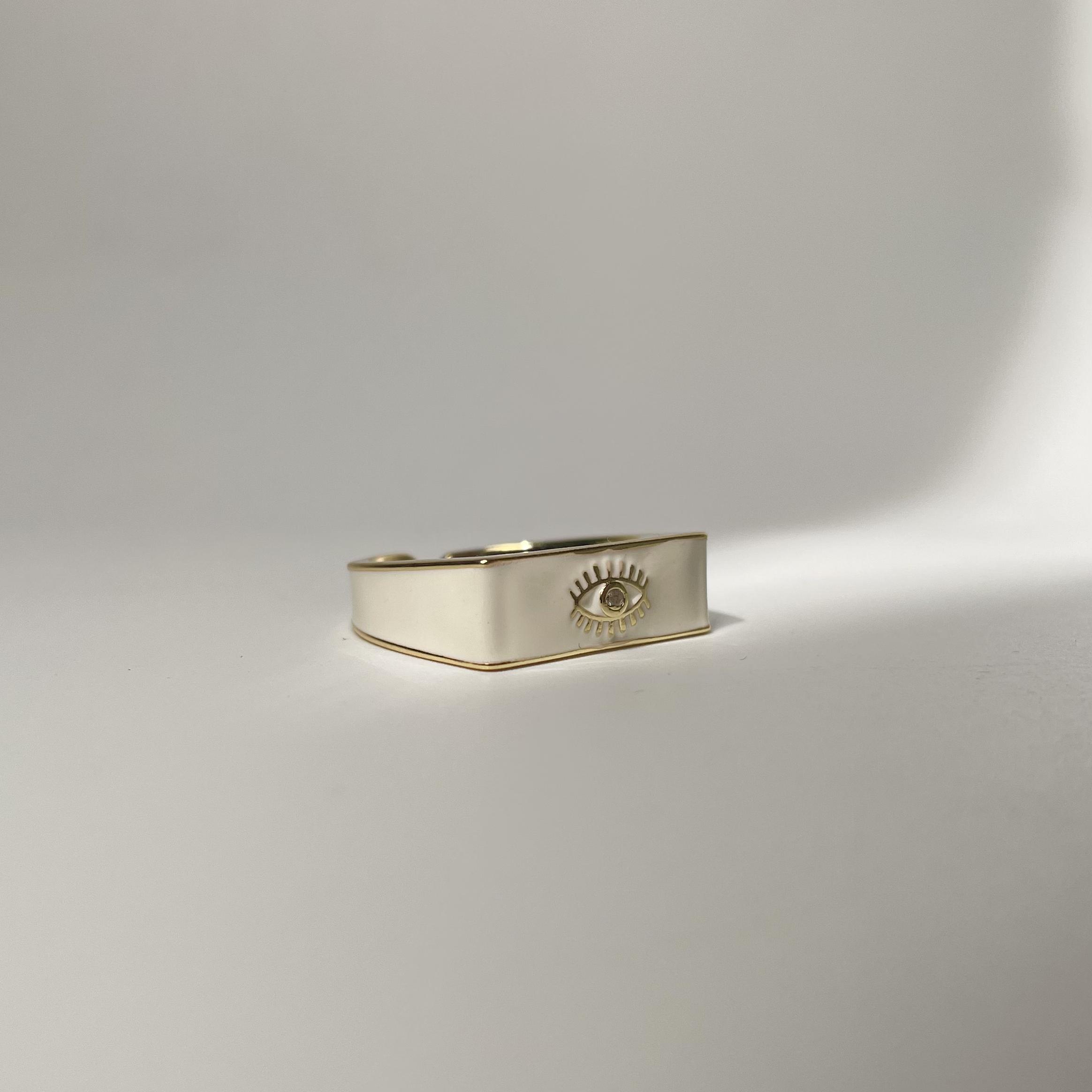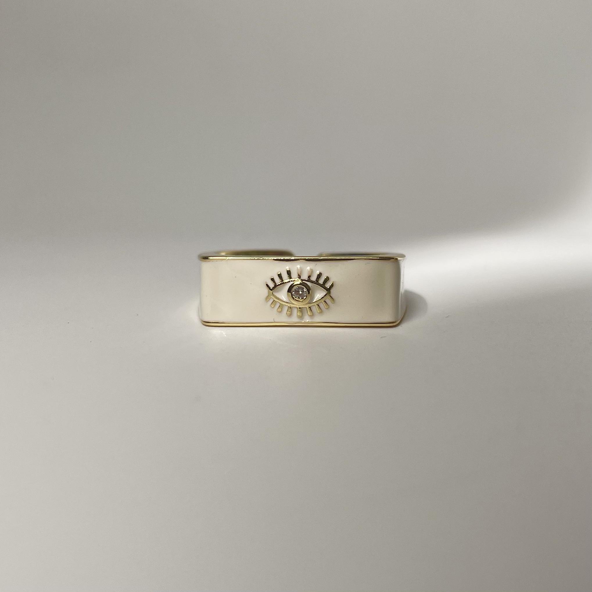 features the powerful symbol of the evil eye, known to offer protection and ward off negativity. With its captivating design and deep meaning, this ring combines elegance with spiritual significance, making it a timeless statement of defense and strength
