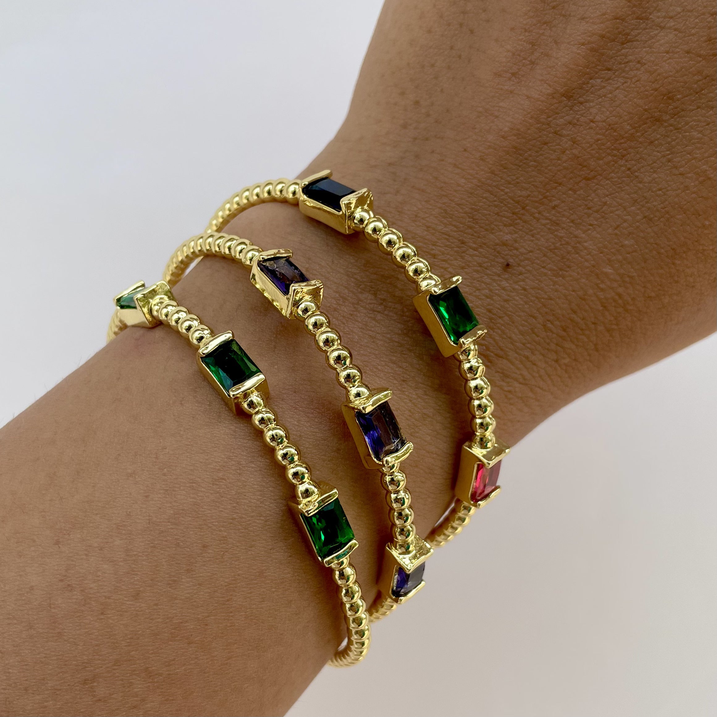 Glimmering Jewel Kada features a stunning array of colorful gemstones, including rich greens and vibrant purples, set in a sleek, contemporary design. The kada’s mix of hues creates a dazzling and dynamic effect, making it a standout accessory for those who enjoy adding a touch of brightness and luxury to their ensemble.