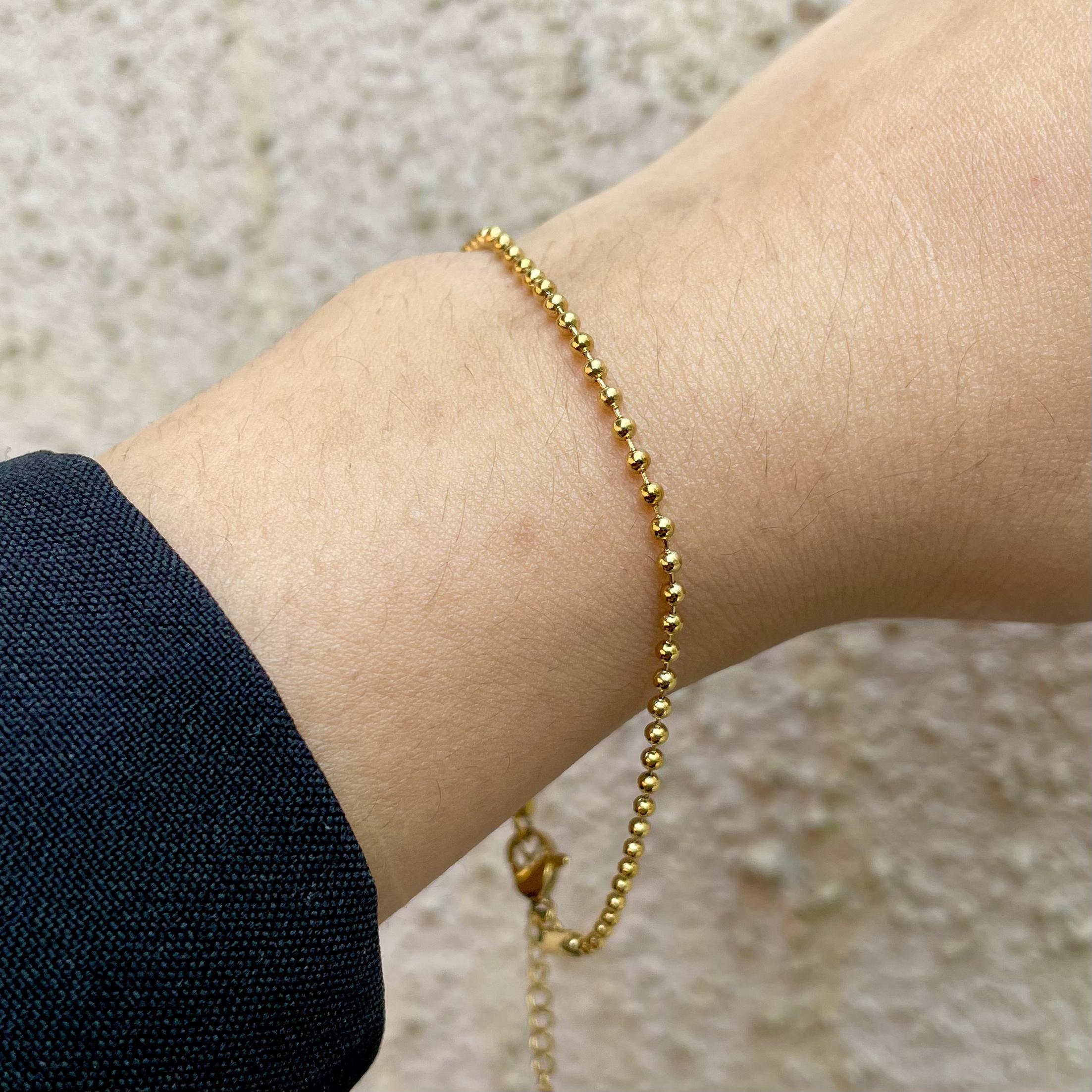 The Golden Orbit Bracelet is a delicate and timeless piece, crafted with a continuous line of polished golden beads. Its minimalist design exudes elegance, making it a versatile accessory that complements any outfit, from casual to formal.