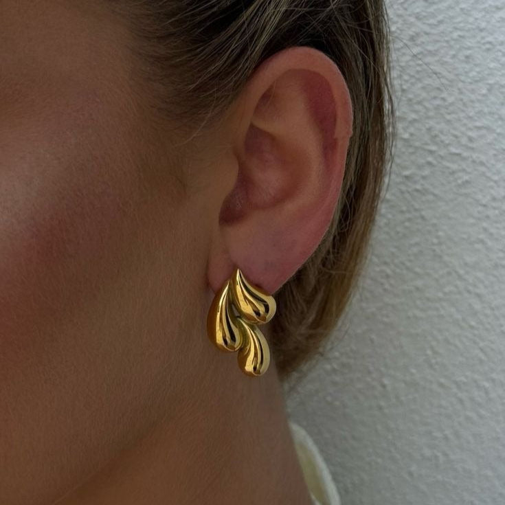 These earrings feature a unique wave-like design, crafted in a lustrous gold finish. The intricate details and smooth curves add a touch of sophistication to any outfit.