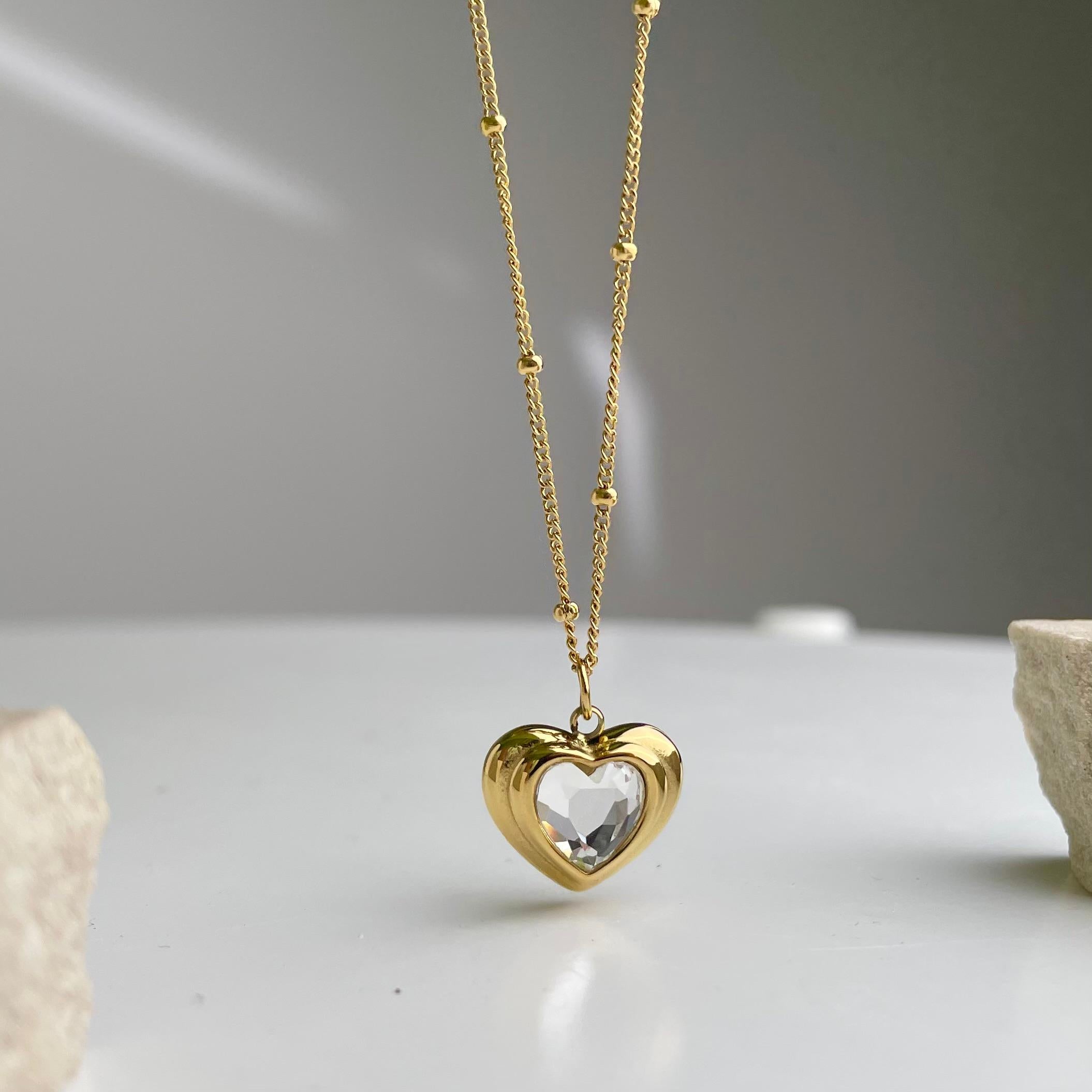 The Heart of Diamonds necklace features a stunning heart-shaped pendant adorned with sparkling diamonds, creating a radiant focal point. This elegant piece embodies love and sophistication, making it a timeless accessory for any occasion.