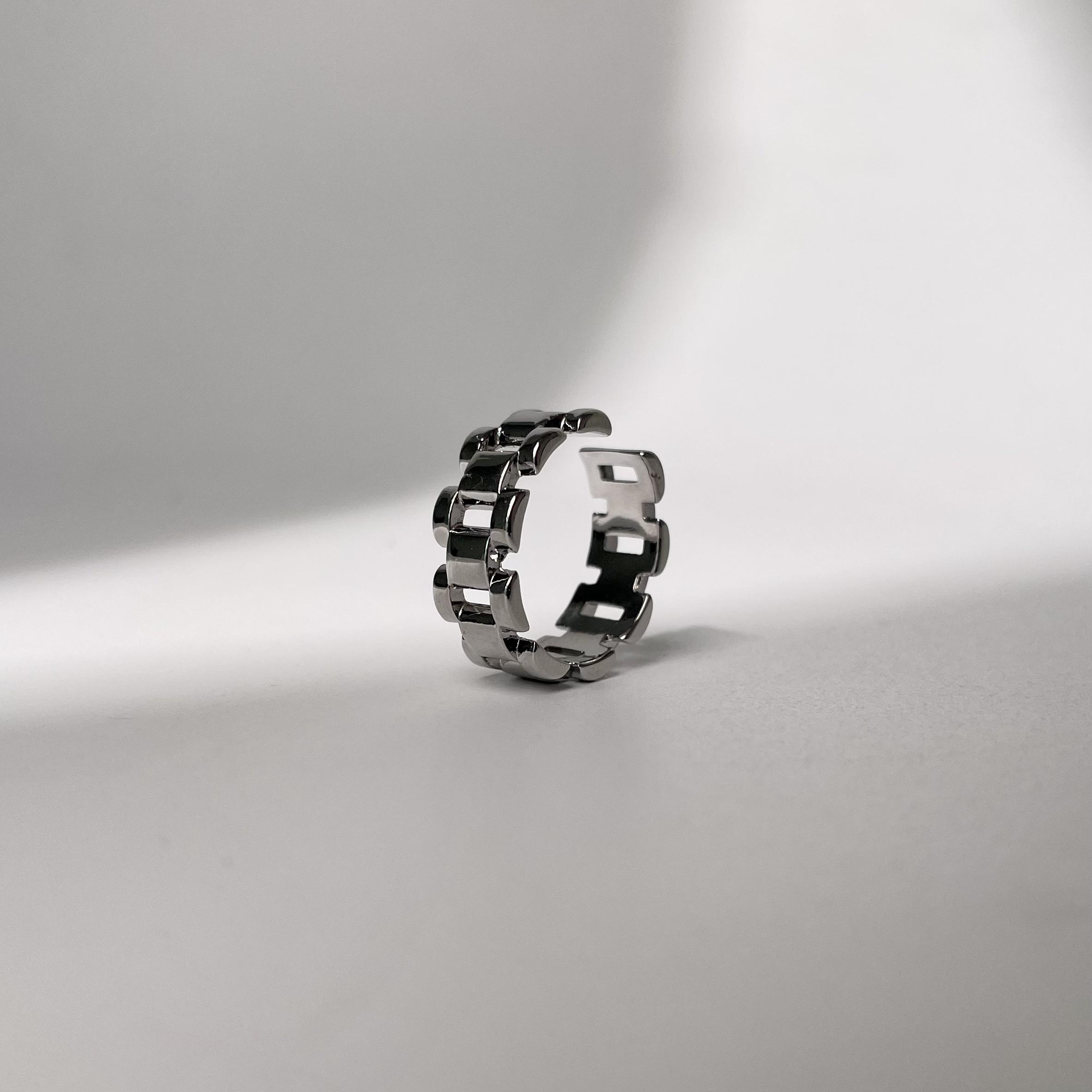 The Linked Harmony Ring is a modern embodiment of strength and unity. Featuring an interlocking chain design, this unique ring is crafted from polished metal links that symbolize connection and resilience. The fluid movement of the chain creates a striking contrast between rugged texture and sleek elegance, making it the perfect accessory for those who appreciate bold yet refined jewelry.
