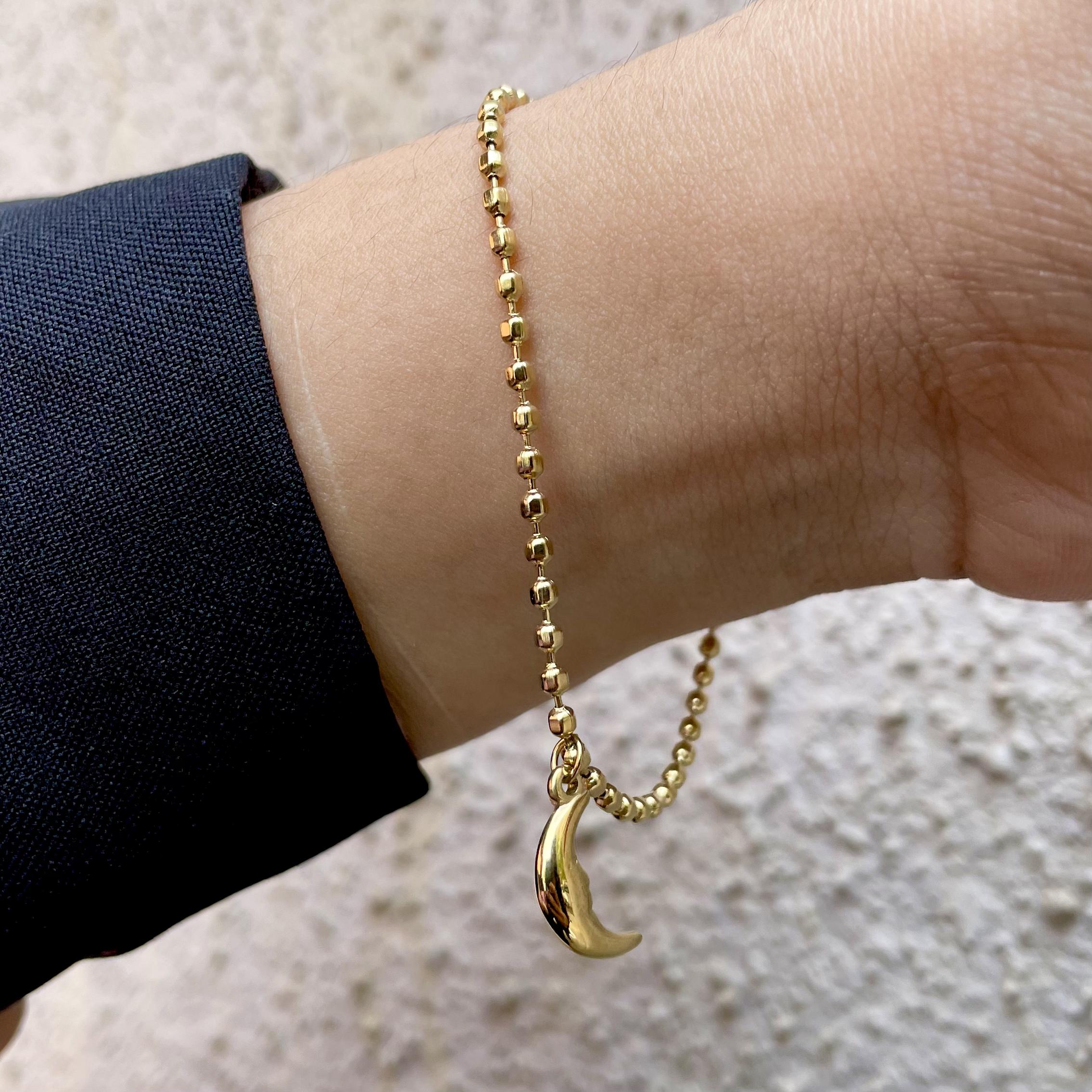 The Lunar Charm bracelet features a delicate moon charm that captures the enchanting beauty of the night sky. Crafted with high-quality materials, this bracelet combines elegance and whimsy, making it a perfect accessory for those who love celestial themes.
