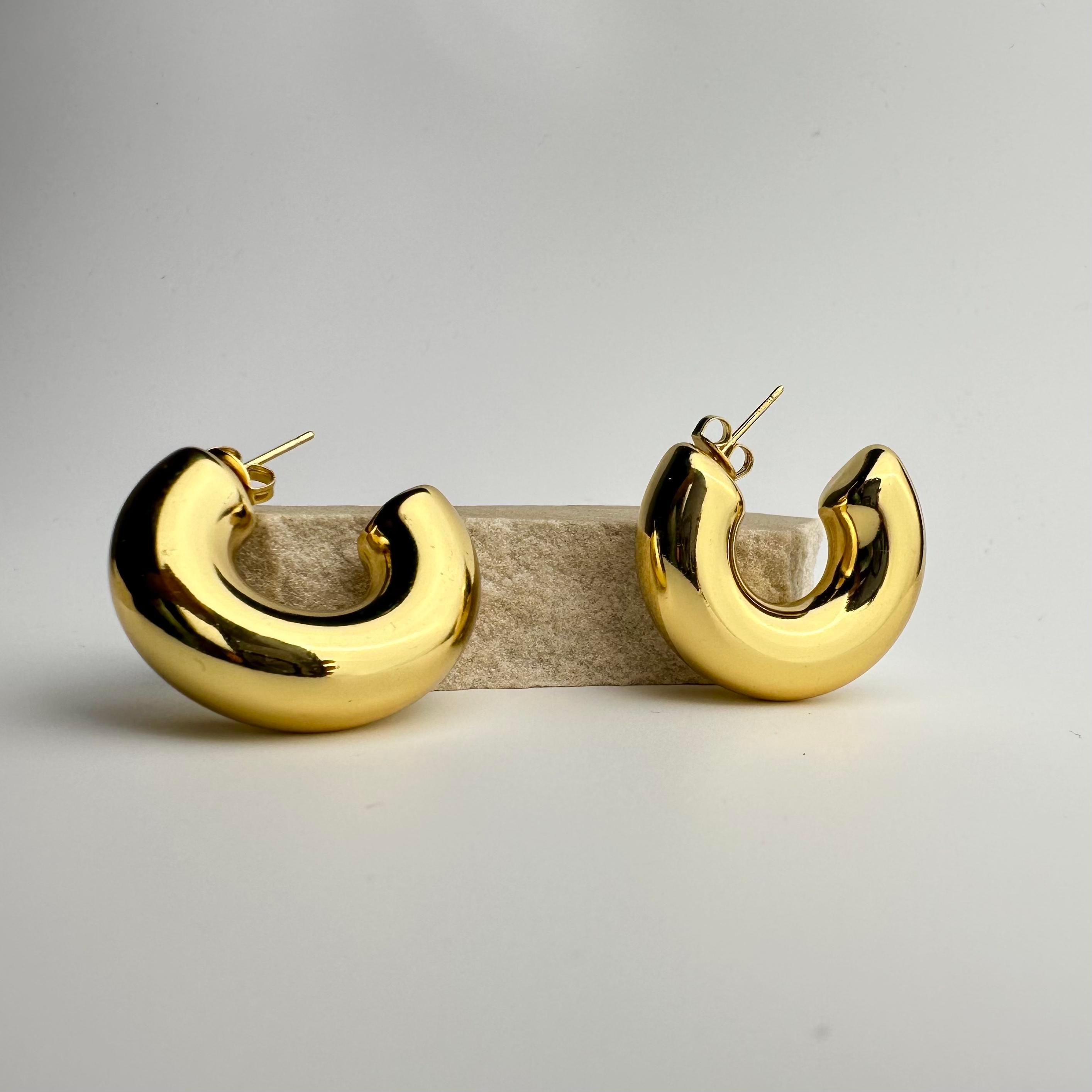Make a statement with the Lunar Curve Bold Earrings, featuring a striking C-shaped design that exudes modern elegance. These bold earrings are crafted from high-polish metal, creating a sleek silhouette that hugs the ear with a confident curve.