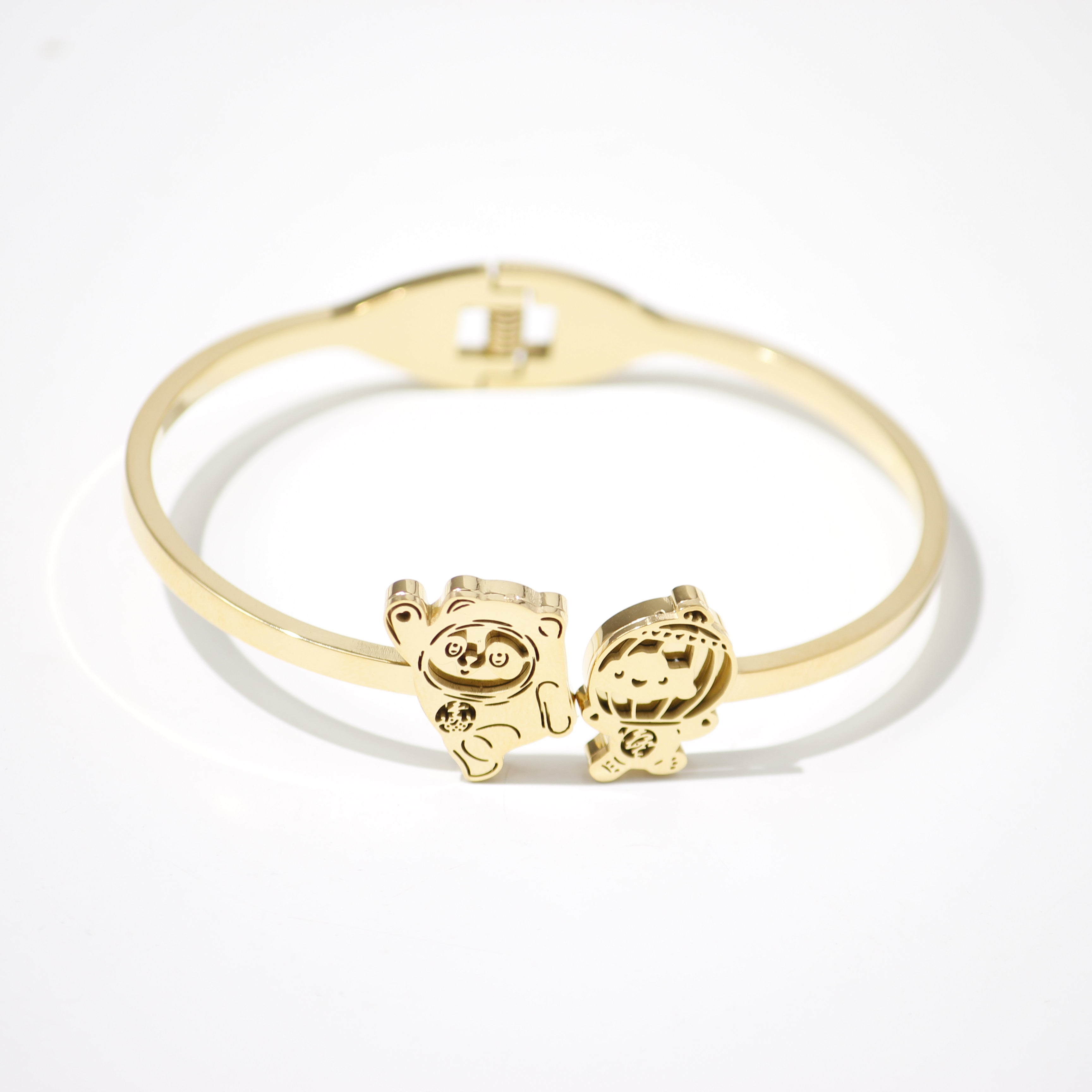 The Panda Pals Cuff Kada is a charming piece of jewelry that brings a touch of whimsy to your wrist. Crafted with adorable panda motifs, including a playful panda and a panda sporting a jaunty hat, this gold-toned cuff is sure to bring a smile to your face.