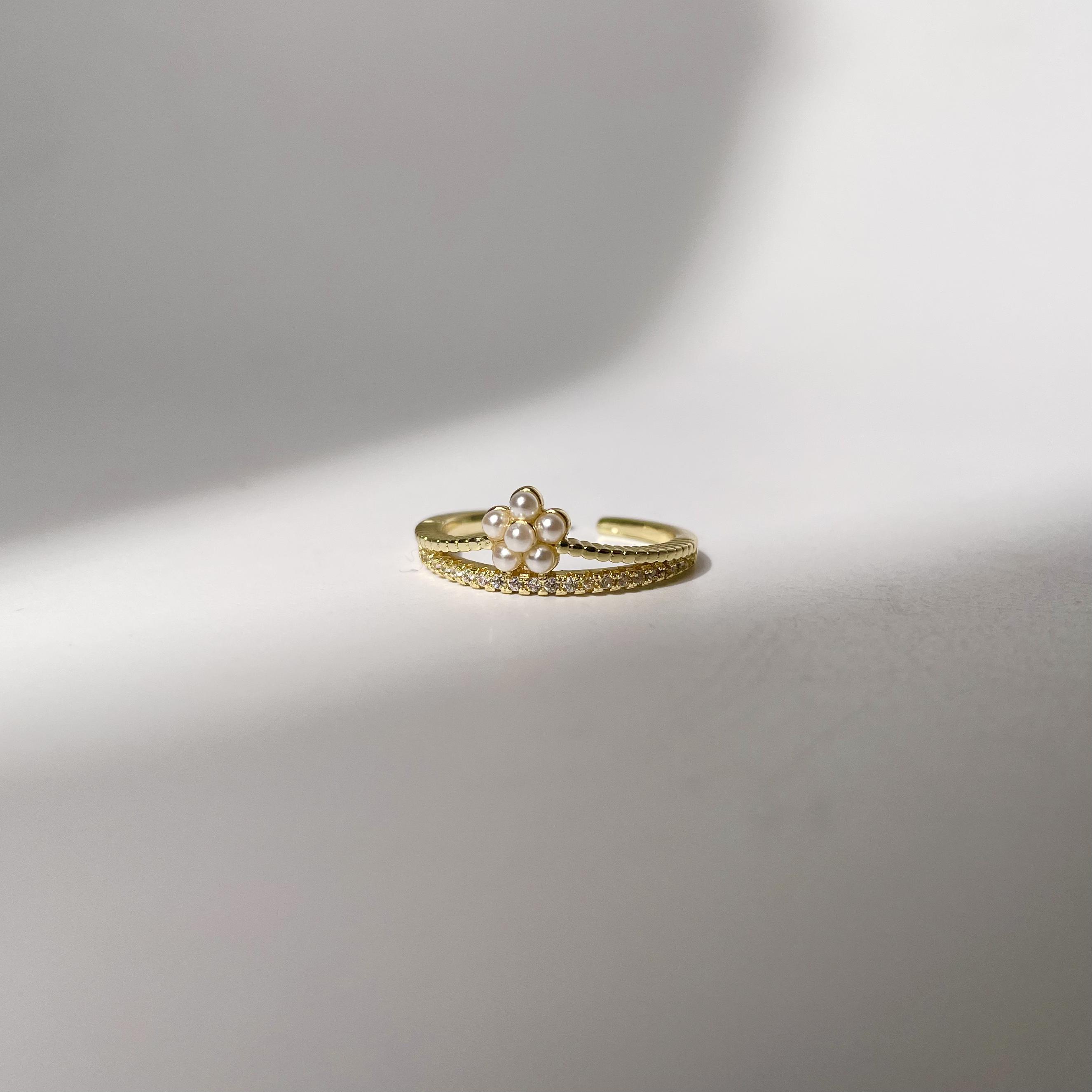 The Pearl Blossom Ring features a stunning pearl as the focal point, surrounded by a delicate arrangement of petal-like elements, creating a floral-inspired design. The smooth, lustrous pearl at the center symbolizes purity and elegance, while the surrounding petals, made of metal or adorned with diamonds or gemstones, enhance the ring’s beauty with a soft, feminine touch.