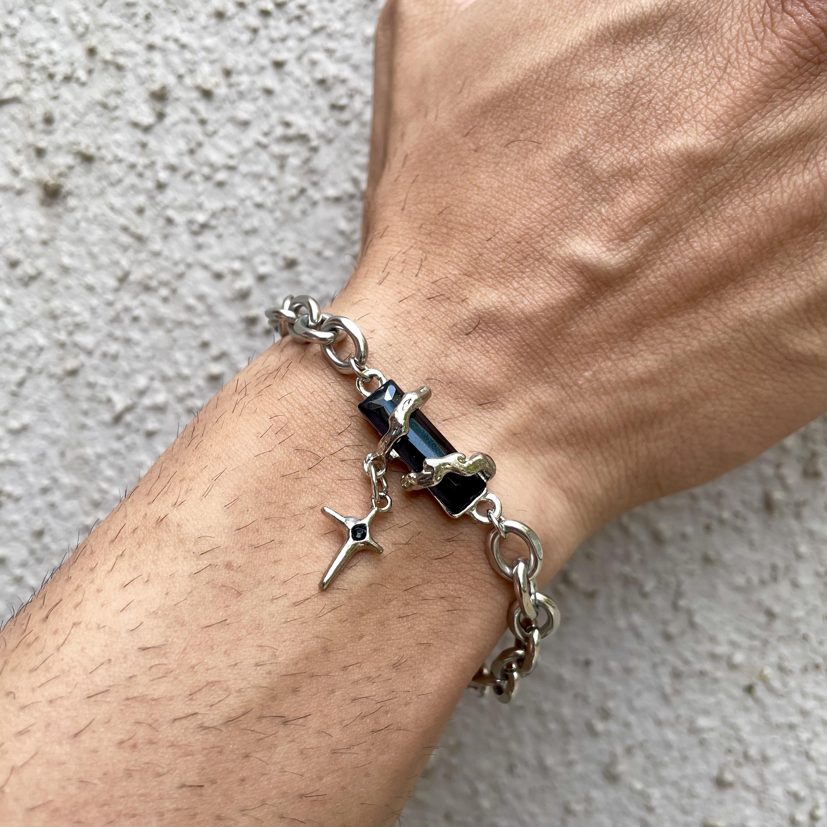 Unleash your inner rebel with the Rockstar Cross Bracelet. This bold statement piece features a chunky chain and a striking cross pendant, perfect for those who dare to be different. This bracelet is not for the faint of heart; it's designed to make a statement and turn heads.