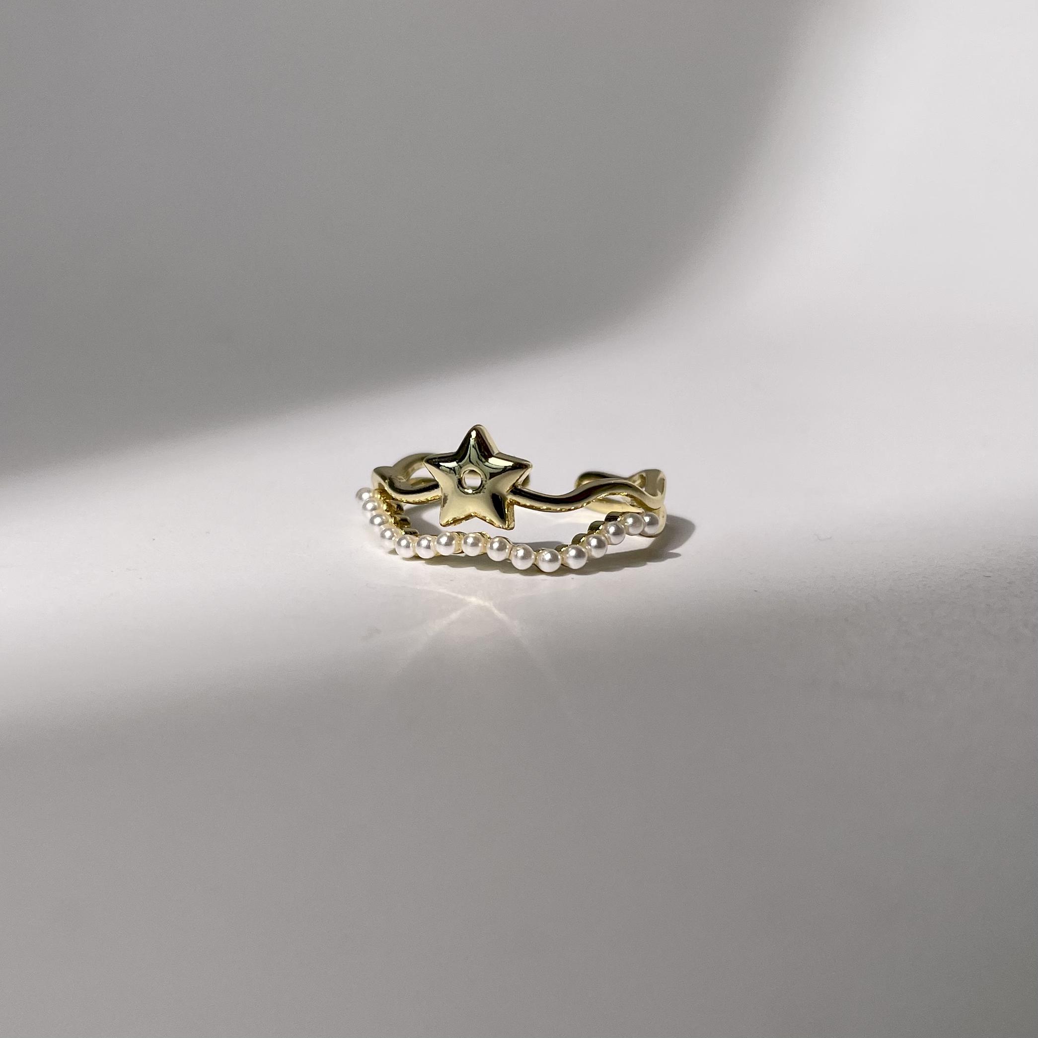 A Star and Pearl Ring combines the beauty of a luminous pearl with the enchanting shape of a star, creating a whimsical and elegant design. The star symbolizes guidance and aspiration, while the pearl adds a timeless, graceful touch. Together, they create a stunning piece that blends celestial charm with natural beauty.