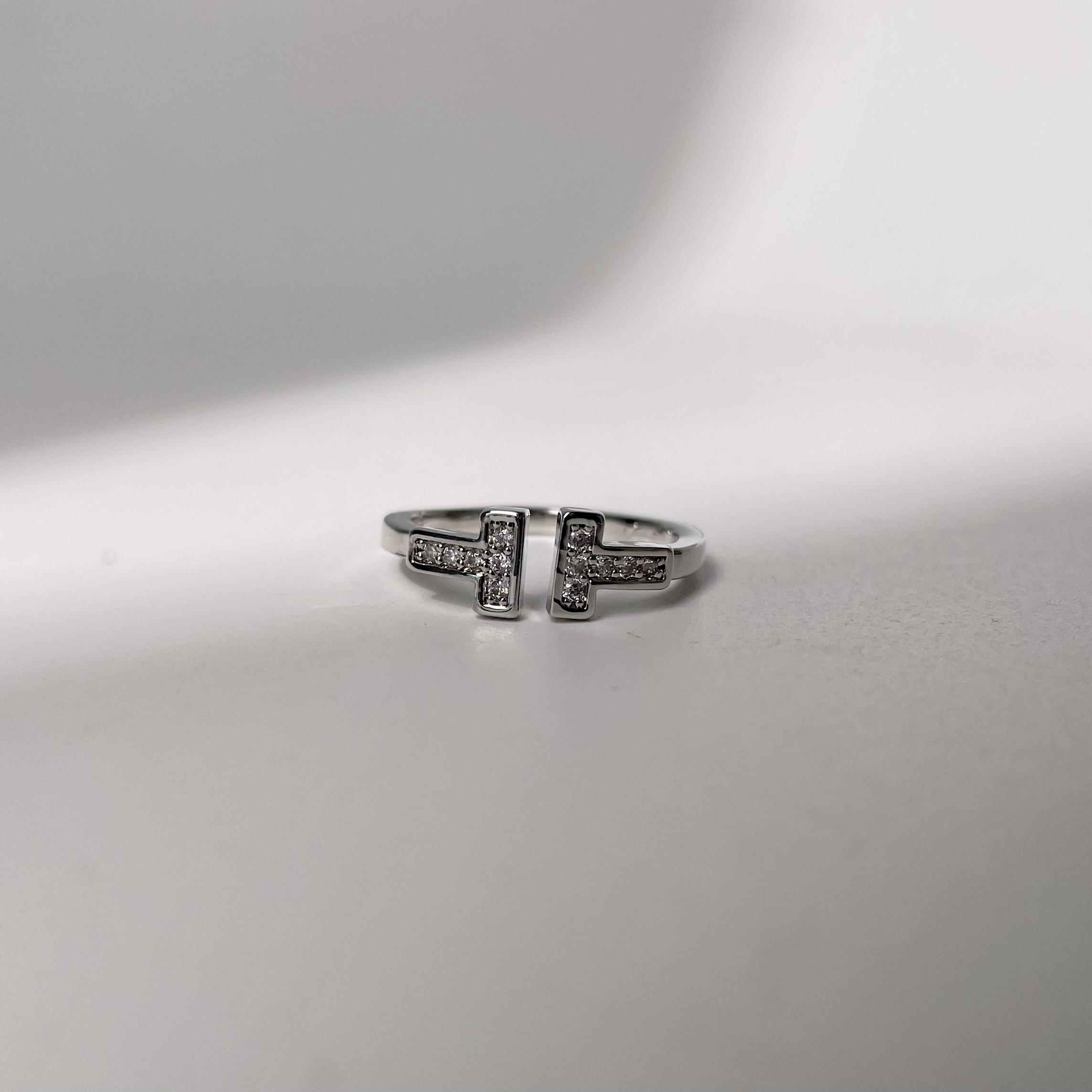 Elevate your style with the Tiffany T-Shaped Diamond Ring, a masterpiece of modern elegance and timeless sophistication. This exquisite ring features a striking T-shaped design, with the central diamond set in a way that accentuates its brilliance and clarity. The clean, geometric lines of the T-shape offer a contemporary twist on classic elegance, creating a piece that is both bold and refined.